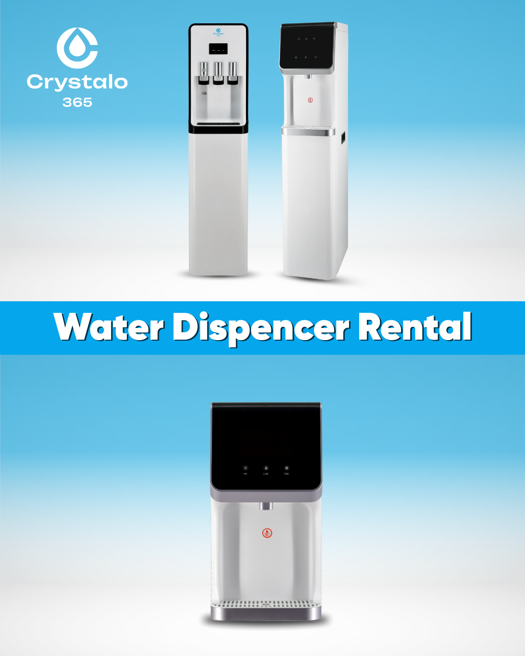 Crystalo365 provides subscription-based water dispenser rentals for offices and organizations, including installation, ongoing maintenance, and regular filter replacement.